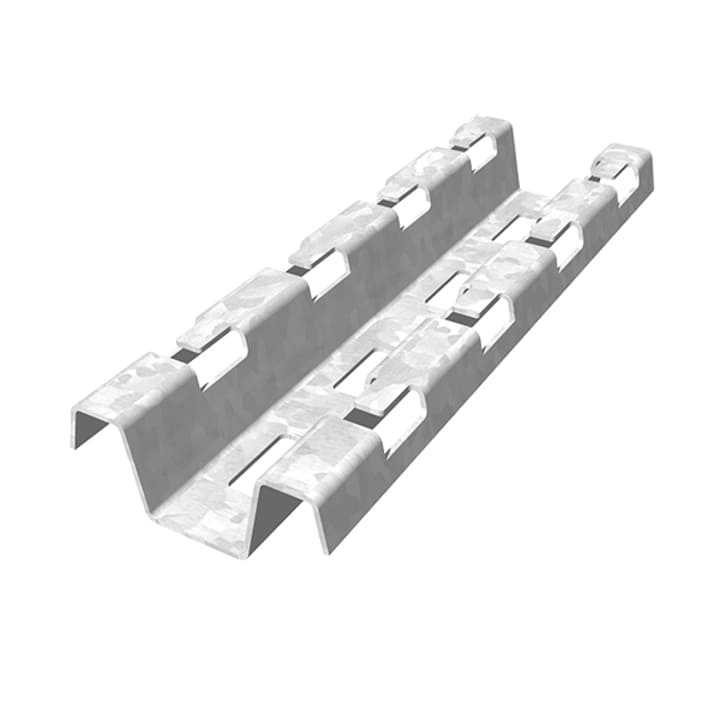 Canal universal dentado, accesorio para bandeja tipo malla. Lamina pregalvanizada, acero inoxidable.
